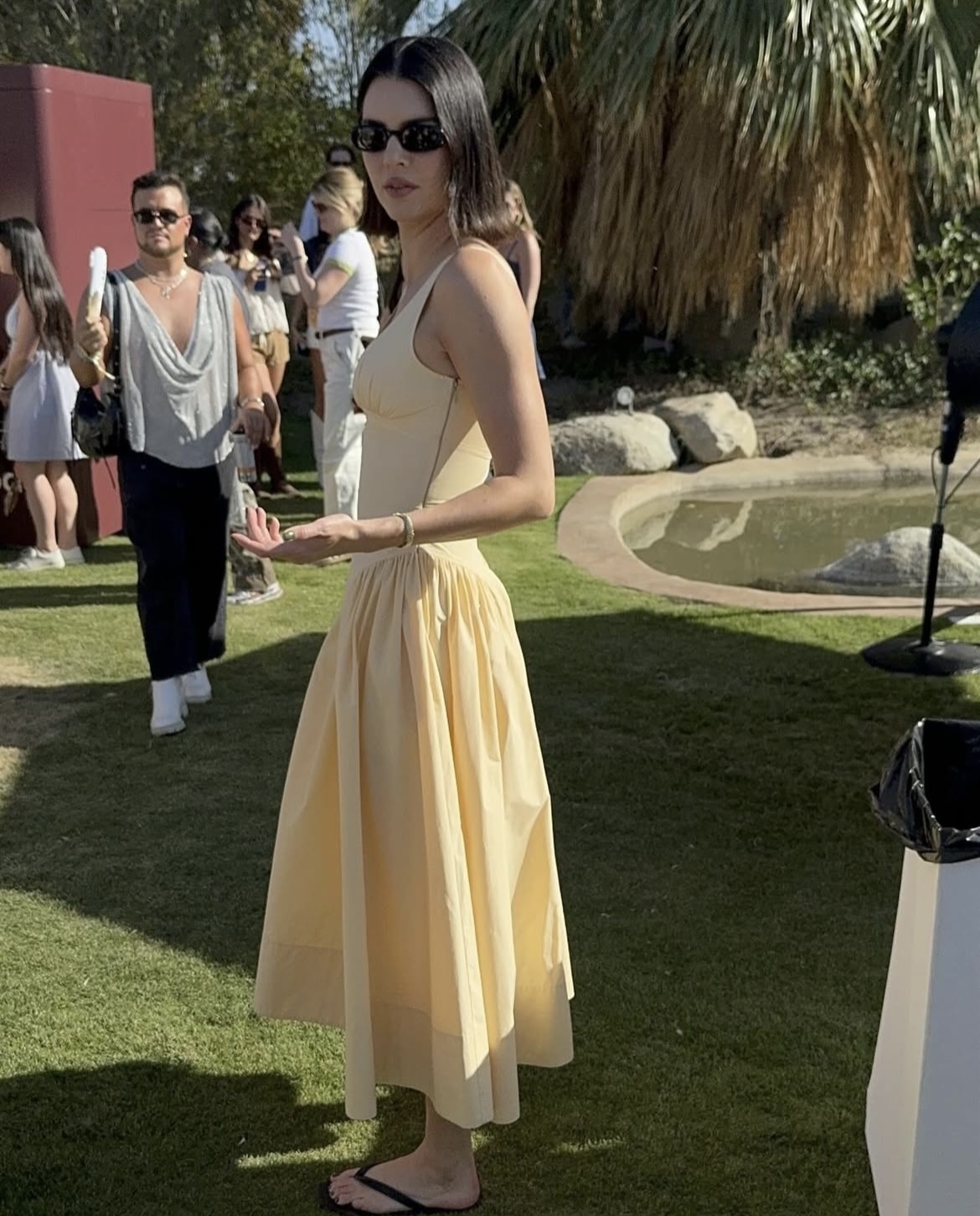 Kendall Jenner once again set the fashion bar high at Coachella 2025, embracing the season's standout hue—butter yellow—in a look that effortlessly blended vintage charm with modern minimalism. At the 818 Outpost, her tequila brand's annual desert soirée, Jenner donned the aptly named "Kendall" dress by Proenza Schouler White Label. This cotton midi dress, featuring a drop waist, scooped neckline, and subtle pleating, exuded a relaxed yet refined vibe, perfectly capturing the essence of springtime elegance.